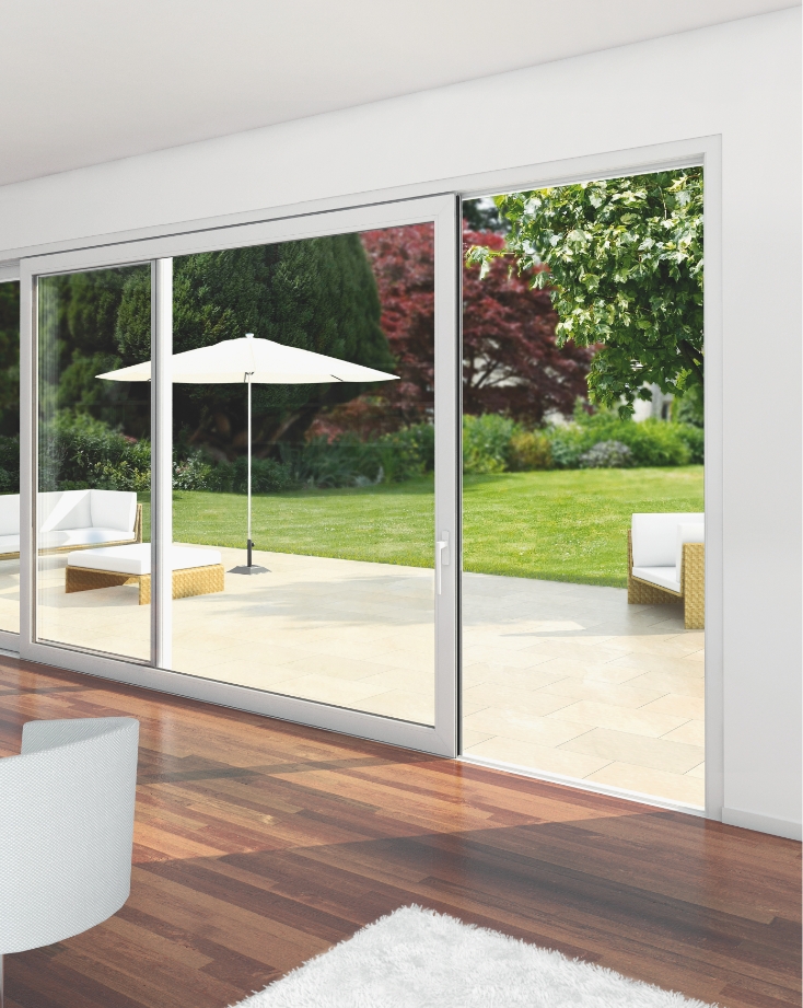 Schüco LivIng HST ist ein modernes Hebe-Schiebetürsystem aus PVC-U, das hervorragende Wärmedämmung, Langlebigkeit und Ästhetik bietet. Es zeichnet sich durch eine stabile Konstruktion, innovative EPDM-Dichtungen und ein bündiges Design aus, das einen modernen Look und maximale Belichtung des Innenraums gewährleistet. Das System ist flexibel in der Gestaltung, mit verschiedenen Öffnungsvarianten und einer breiten Palette an Farboptionen.