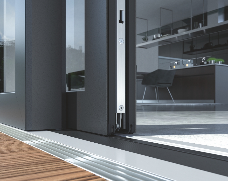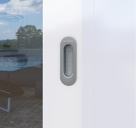 Schüco LivIng begeistert mit sorgfältig gestalteten Beschlägen, die einen reibungslosen und leisen Betrieb der Türen gewährleisten. Der elegante Handgriff und der moderne Türdrücker betonen den einzigartigen Stil des Systems, indem sie Ästhetik mit höchster Funktionalität vereinen. Jedes Detail wurde verfeinert, um Harmonie und Perfektion in Ihrem Innenraum zu schaffen.